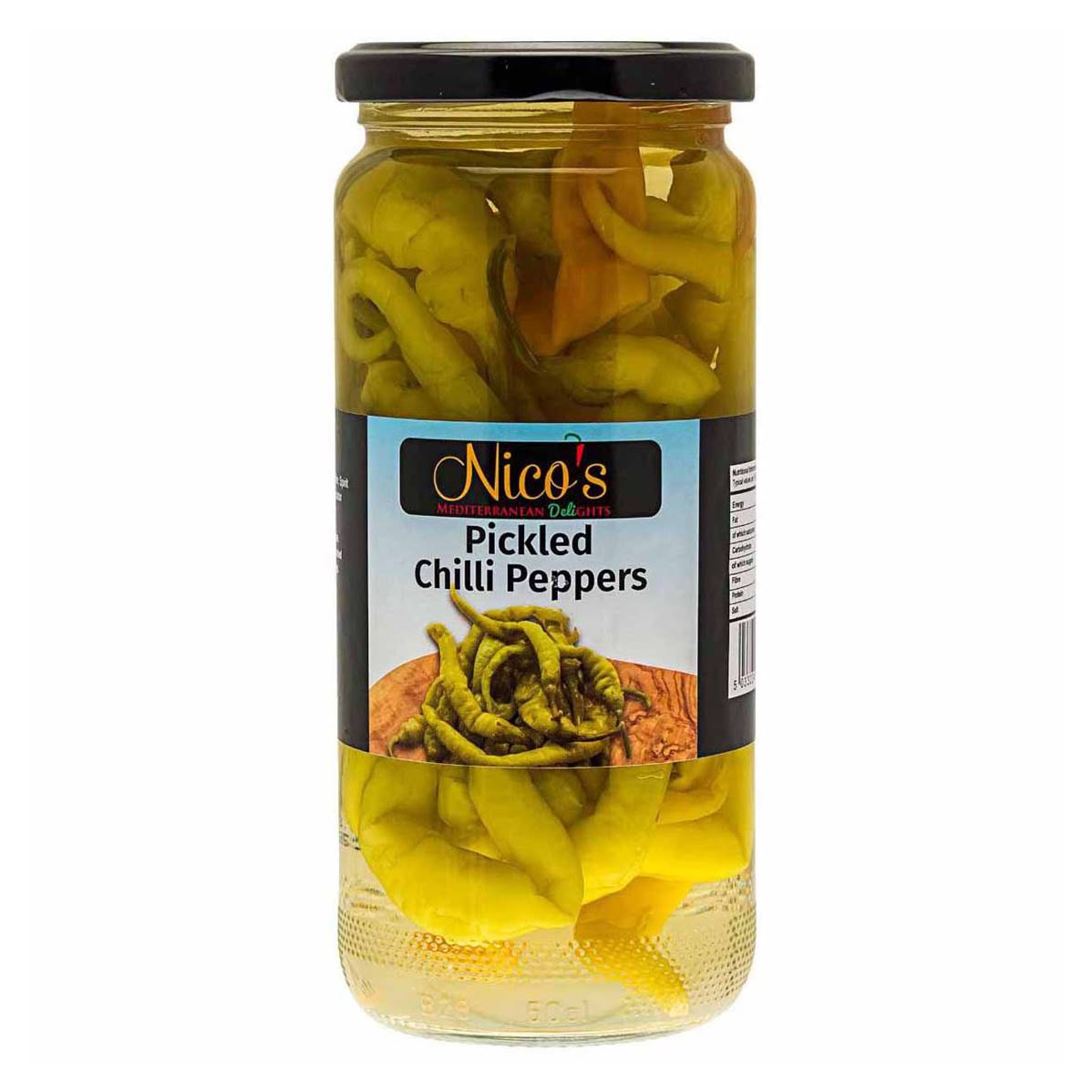 Piments, eau, vinaigre d'alcool, sel & régulateur d'acidité (acide citrique E330).